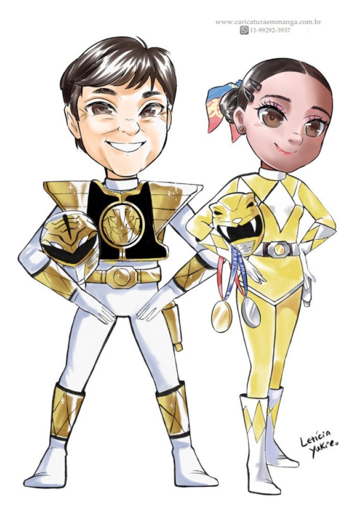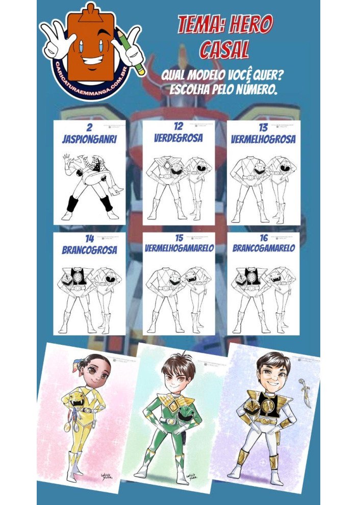 Caricatura em mangá com modelos de corpinhos prontos na temática Hero Casal!